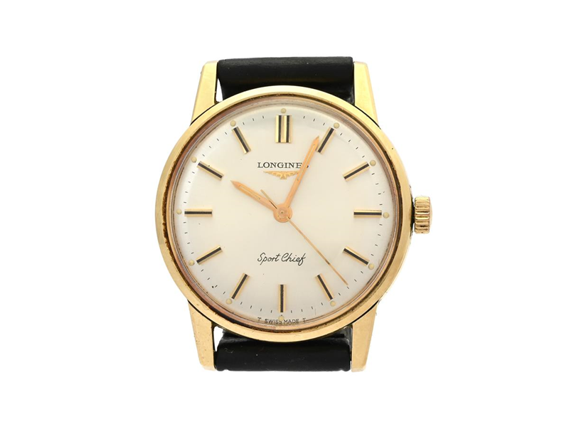LONGINES, Sport Chief (T Swiss Mdae T), Cal 280, Serie nr. 13159962, Boett nr. 7633 1 / 1602, herrur, 34 mm, guld på stål, manuell, plexiglas, läderband, originalspänne i doublé, ca 1966, box.