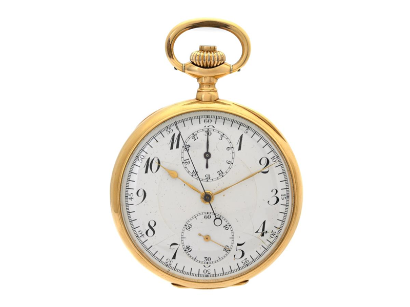ZENITH, fickur, 49 mm, kronograf, Serie nr. 2236850, Boett nr. 213868, 18K guld, ankargång, skadad urtavla, defekt (går ej, akut servicebehov), gravyr (se bild/fördjupad information), motiv, innerlock i18K guld, bucklor, ca 1918, etui (skadat, G.W.Linderoth, Hovurmakare Drottninggatamn 28 Sthlm).
