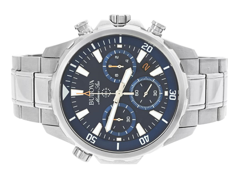 BULOVA, Marine Star (100 m), Serie nr. 282K26292, Ref nr. 96B256, kronograf, herrur, 43 mm, stål, quartz, mineralglas, datum, vridbar innerring, originallänk, ca 2020, box, ytterkartong.