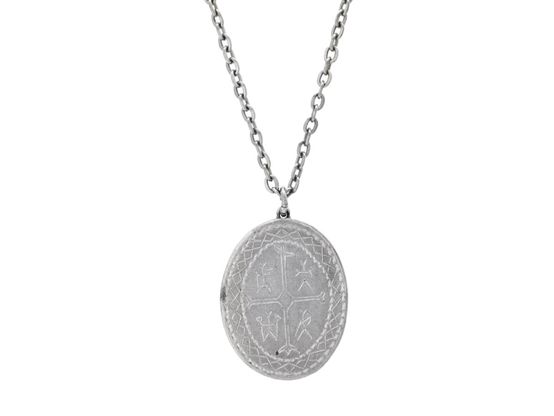 HÄNGE MED KEDJA, tenn, trolltrumma, Jokkmokks tenn, längd ca 70 cm, vikt 22,5 g.