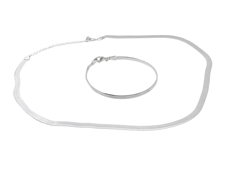 ANI JEWELS, silver, gröna stenar, collier, armband, halvstel länk, collier längd 40-45 cm, armband längd 17,5 cm, vikt 14,0 g.