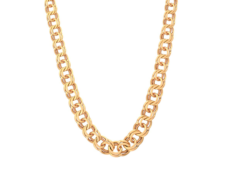 COLLIER, 18K guld, bismarcklänk, doserad 4,5-7,5 mm, Clareus Guldsmeds Ab, längd 42 cm, vikt 21,5 g.