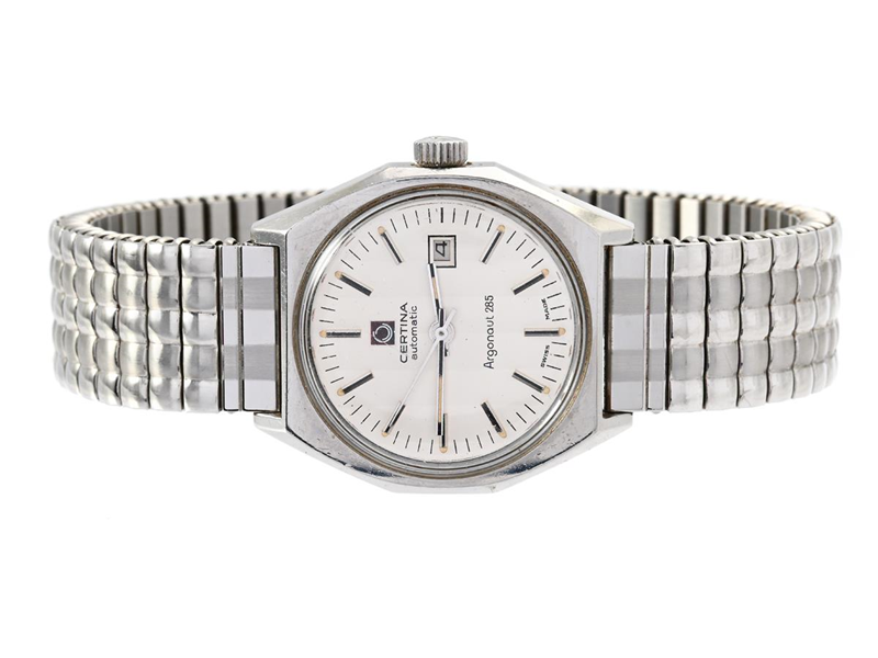 CERTINA, Argonaut 285, Boett nr. 909.1285.41, damur, 28 mm, stål, automatisk, plexiglas, datum, ca 1975, metallänk ej original, box.