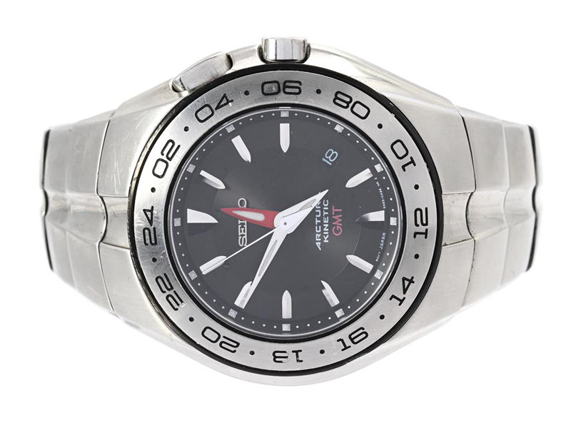 SEIKO, Arctura, Serie nr. 751236, Boett nr. 5M65-0AA0, herrur, 46 mm, stål, kinetic, safirglas, datum, 24-timmarsvisning, integrerad originallänk, viklås, ca 2005.