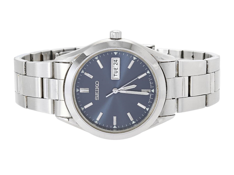 SEIKO, herrur, 37 mm, Serie nr. 890727, Boett nr. 7N43-9070, stål, quartz, hardlexglas, dag, datum, originallänk, viklås, ca 2007.