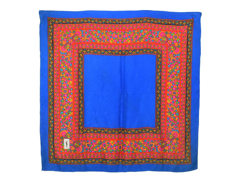 SCARF, YSL, vintage, 100% jacquard, 86x86 cm, blå, röd, rosa, grön, orange.