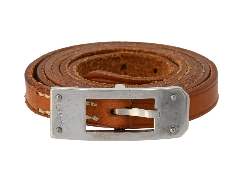 ARMBAND, HERMÈS, Behapi Double Tour Bracelet, brunt läder, silverfärgat spänne, längd 69-72 cm, bredd 0,5 cm, bruksslitage.