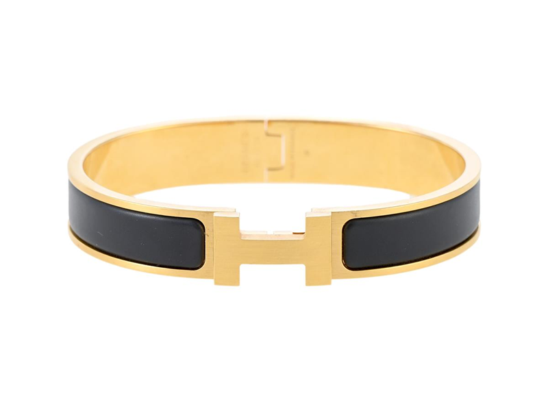 ARMRING, HERMÈS, Clic H Bracelet, matt svart emalj, guldfärgat spänne, diameter 6,3 cm, repor.