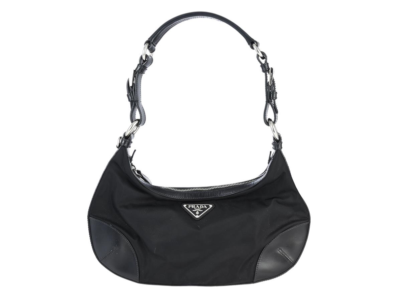 VÄSKA, PRADA, Hobo Bag, svart nylon, skinn, silverfärgade beslag, 33x21x2 cm, cert, dustbag, bruksslitage.