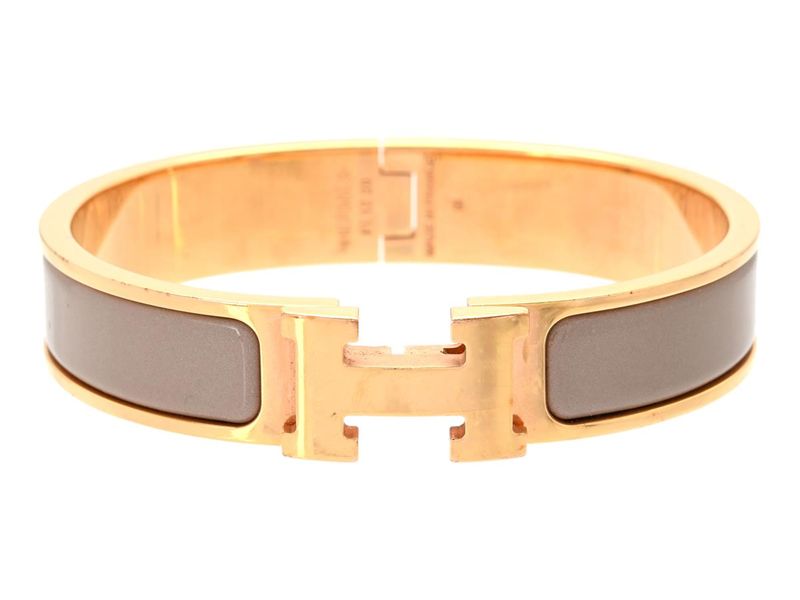 ARMRING, HERMÈS, Clic H Bracelet, beige emalj, guldfärgat spänne, diameter ca 5 cm, bredd 1 cm, smyckespåse, ask.