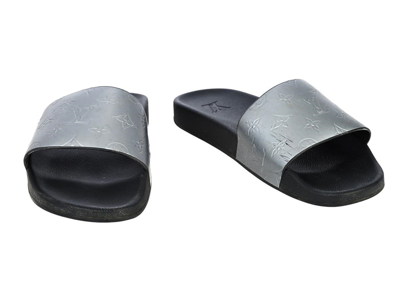 TOFFLOR, LOUIS VUITTON, Waterfront Mules, LV monogam, silver, svart sula, stl 44, märkt VS 0231.