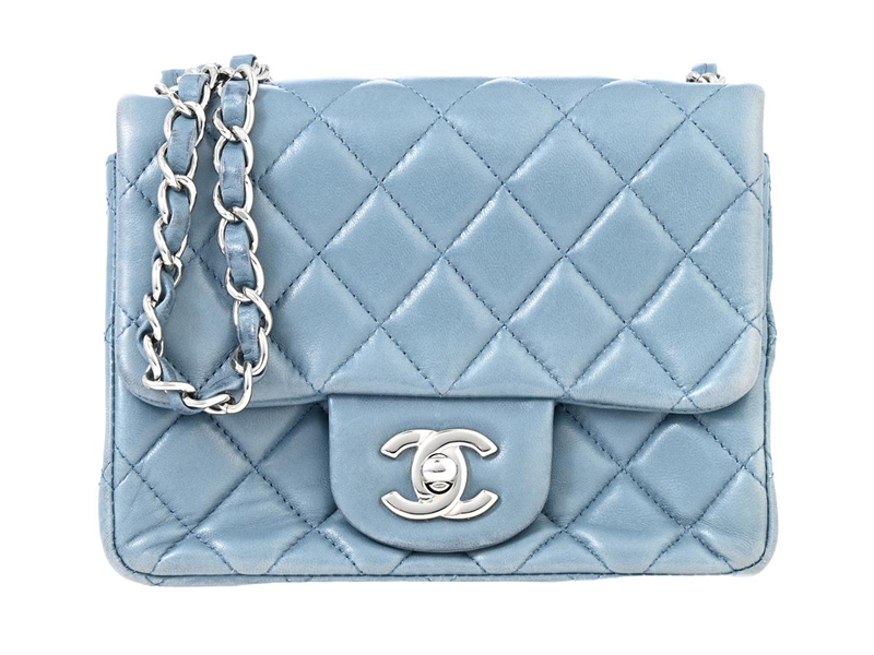 VÄSKA, CHANEL, Mini Flap Bag, ljusblått quiltat lammskinn, silverfärgade belsga, 16x12x7 cm, hologrammärkt 17564437, år 2012-2013, bruksslitage, dustbag.