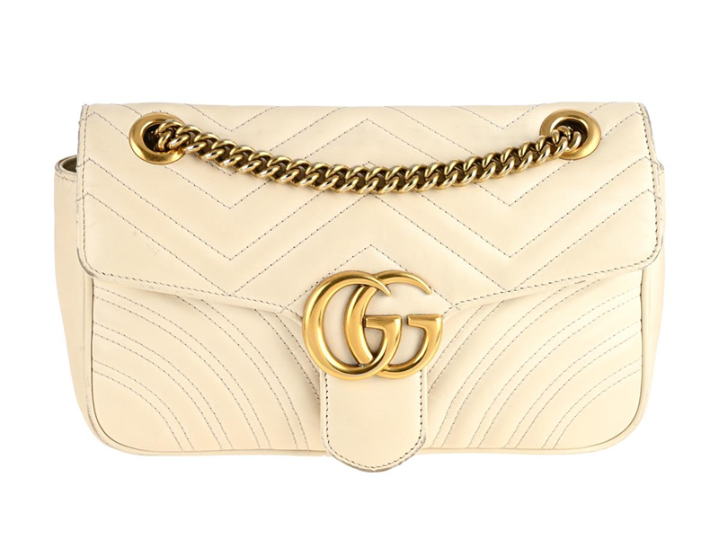 VÄSKA, GUCCI, Marmont Bag, benvit quiltat läder, guldfärgade beslag, 24x15x7 cm, bruksslitage, dustbag.