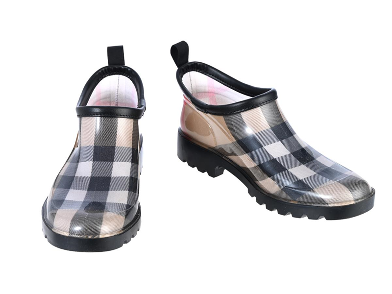 SKOR, BURBERRY, rutig röd, beige, svart gummi, läderdetaljer i svart, stl 38, kartong.