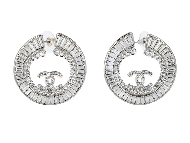 ÖRHÄNGEN, CHANEL, Logo CC, vita stenar, silverfärgad metall, stift, 4x4 cm, vikt 13,5 g, märkt B23 S, år 2023, bruksslitage.
