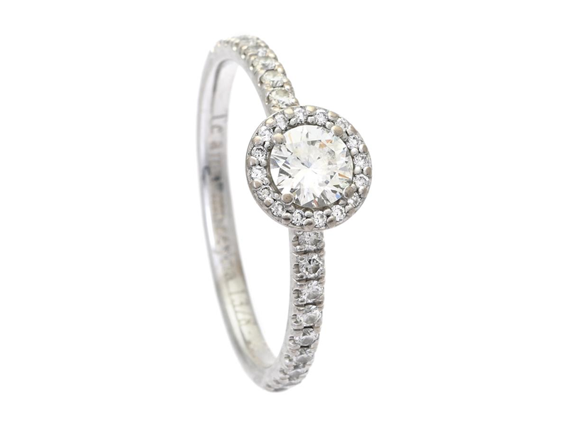 RING, 18K vitguld, briljantslipad diamant ca 0,62 ct, ca W(H)/VS1, briljantslipade diamanter ca 0,44 ctv, ca TW/VS, Kriegh, stl 20,5 mm, etui, ytterkartong, gravyr, något oval ringskena.