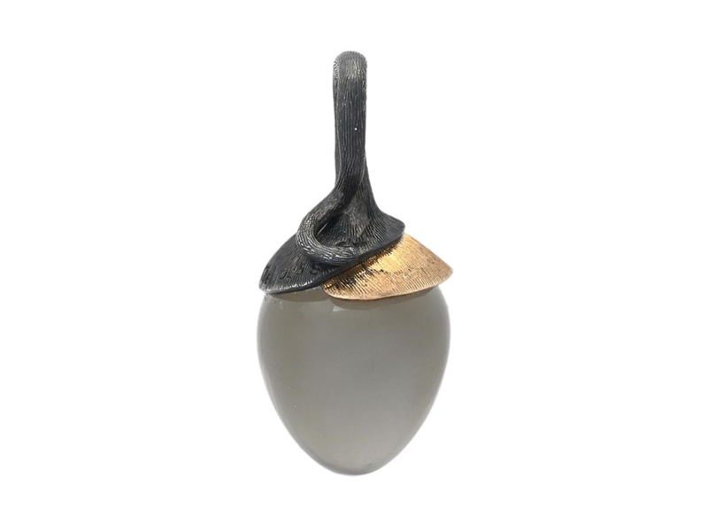 OLE LYNGGAARD, hänge, Lotus, oxiderat sterlingsilver/18K guld, grå månsten, höjd 23 mm, vikt 2,9 g.
