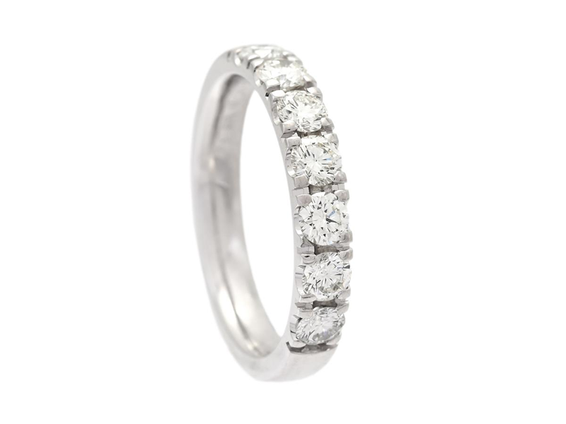 ALLIANSRING, 18K vitguld, 7 briljantslipade diamanter 0,91 ctv, ca TW/VS, stl 17 mm, vikt 5,0 g, gravyr.