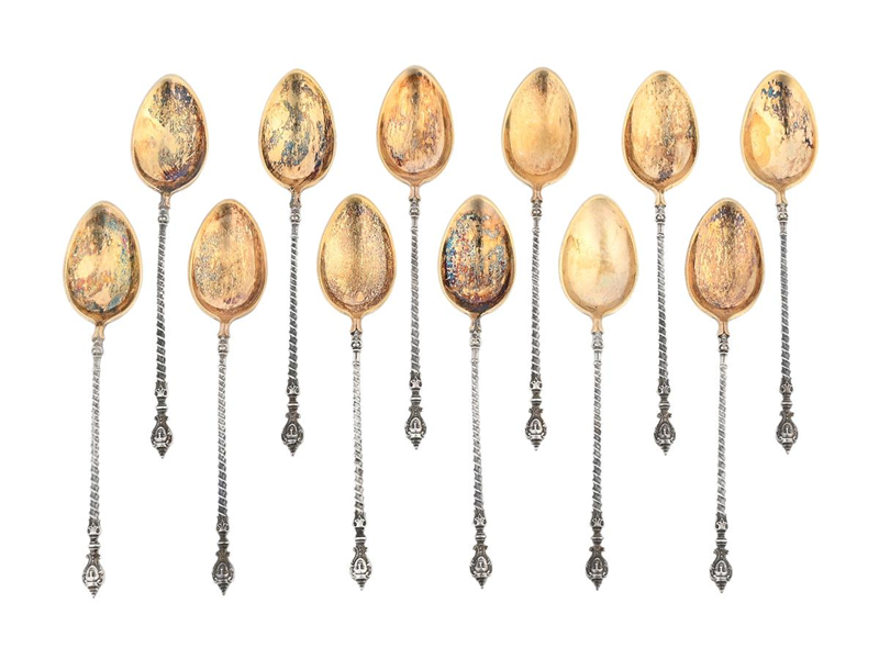 NILS AUGUST MALMQVIST, mockaskedar. silver delvis förgyllt, tvinnad dekor, Malmö 1880-tal, vikt 71,3 g, med etui.