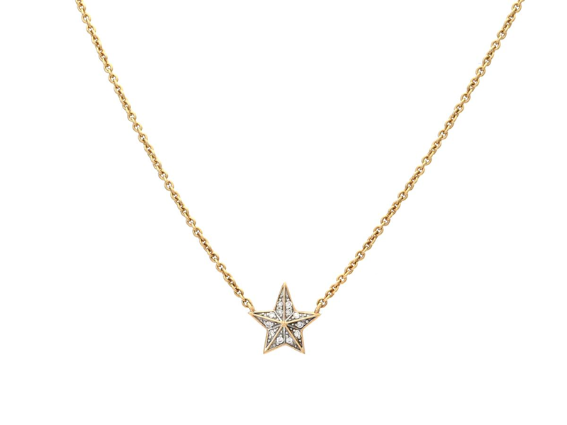 EFVA ATTLING, collier, Catch A Falling Star & Stars Necklace, 18K guld, briljantslipade diamanter ca 0,06 ctv, längd 42/45 cm, vikt 4,9 g, etui, ytterask.
