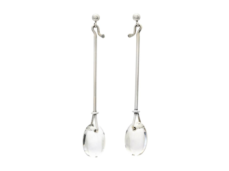 GEORG JENSEN, örhängen, Dew Drop, sterlingsilver, bergkristall, Vivianna Torun Bülow-Hübe, höjd 62 mm, vikt 5,8 g, stift, originaletui, ytterask.