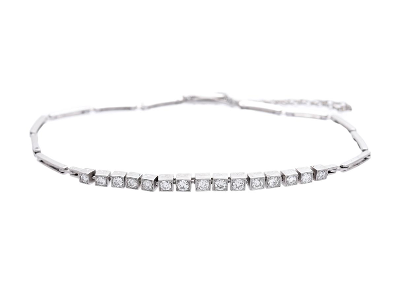 ARMBAND, 18K vitguld, 15 briljantslipade diamanter ca 0,52 ctv, ca TW/VS, Petterssons Juvelerar Ab, Stockholm 1941, längd ca 18,5 cm, säkerhetskedja vid lås, vikt 7,4 g, enstaka diamant med kulettfasett.
