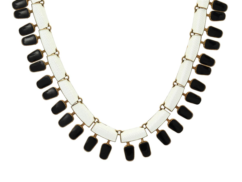 AKSEL HOLMSEN, collier, sterlingsilver, vit och svart emalj, sent 1800-tal, längd 38 cm, vikt 60 g.
