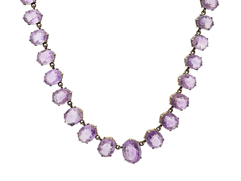 COLLIER, förgyllt silver, ametister, antikt, längd 41 cm, vikt 45 g.