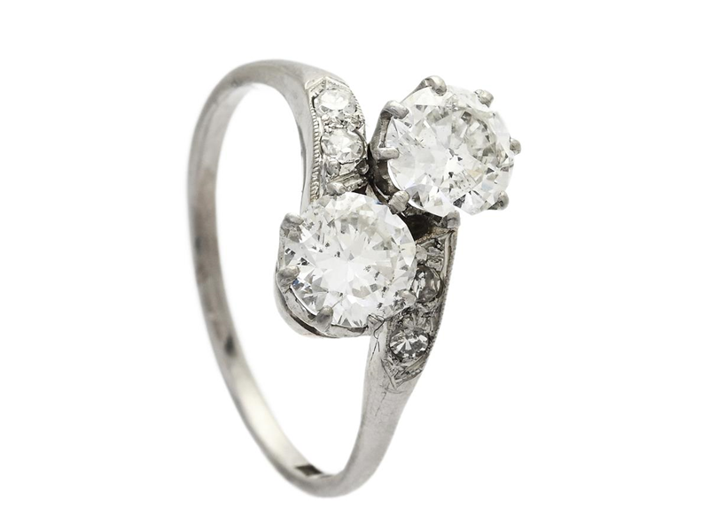 SYSKONRING, platina, 2 äldre briljantslipade diamanter ca 1,20 ctv, ca W/P1, 4 åttkantslipade diamanter ca 0,12 ctv, Stockholm 1939, stl 17,75 mm, vikt 4,1 g.