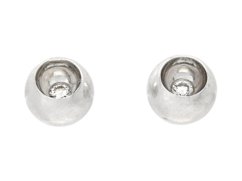 GEORG JENSEN, örhängen, Cave, 18K vitguld, 2 briljantslipade diamanter ca 0,08 ctv, ca TW/VS, Jacqueline Rabun, diameter 7,4 mm, vikt 3,7 g, stift.