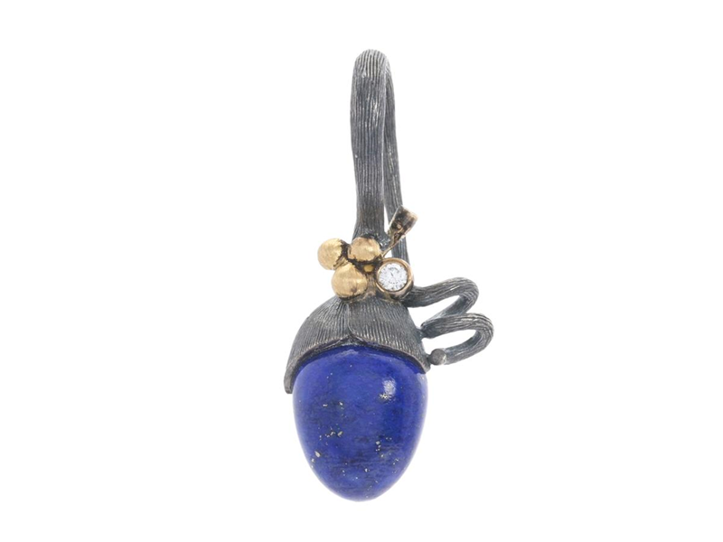 OLE LYNGGAARD, hänge, Lotus sprout, oxiderat sterlingsilver/18K guld, lapis lazuli, briljant 0,01 ct, TW/VS.