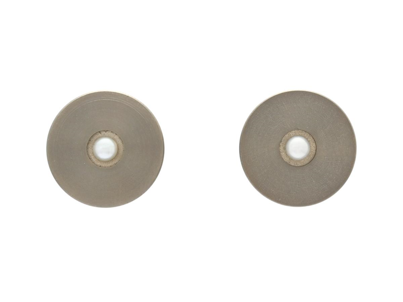INGRID BÄRNDAL, örhängen, titan, odlade pärlor, diameter 15 mm, stift, snurrebuss i sterlingsilver.