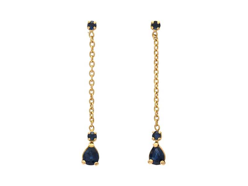 ÖRHÄNGEN, 18K guld, safirer, längd 32 mm, stift, vikt 2 g.