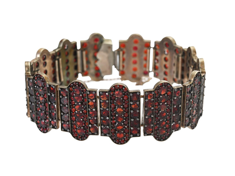 ARMBAND, oädel metall, granater, längd 18 cm, vikt 33,7 g.