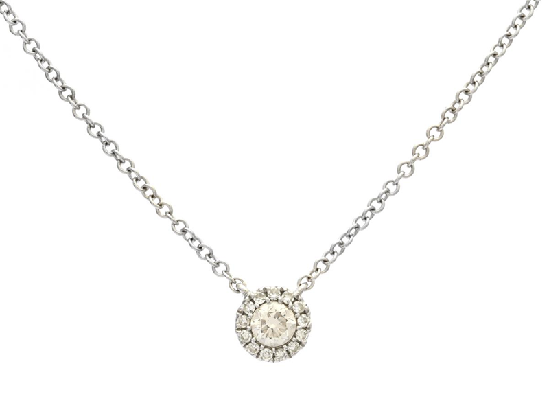 HÄNGE MED KEDJA, 14K vitguld, briljantslipad diamant ca 0,10 ctv, ca TCr/VS, 13 åttkantslipade diamanter ca 0,06 ctv, höjd 5 mm, kedja 40-49 cm, vikt 1,6 g.