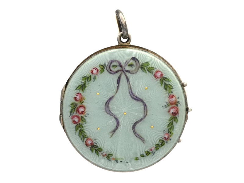 MEDALJONG, sterlingsilver, emalj, diameter 34 mm, liten buckla.