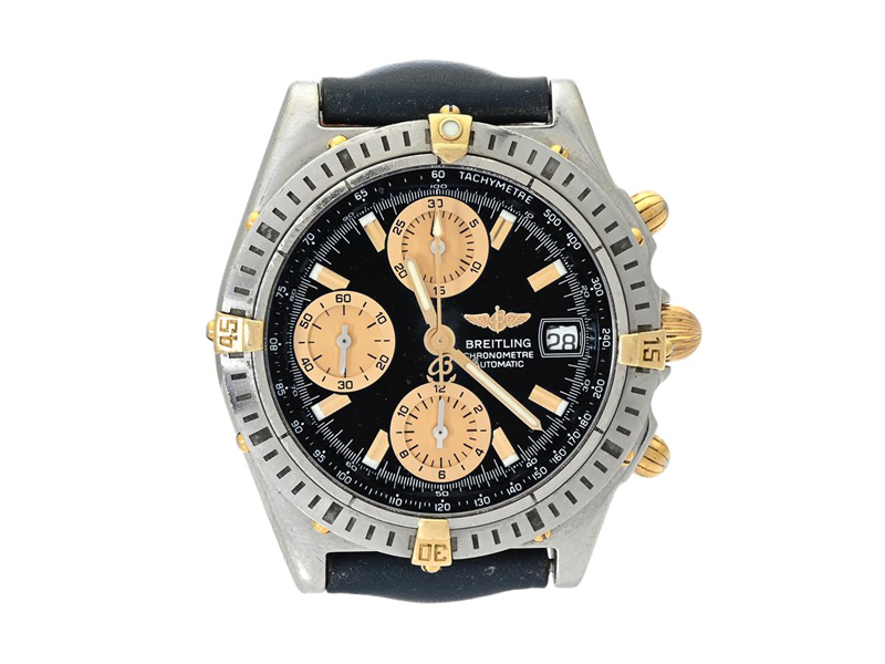 BREITLING, Chronomat, Chronometre, "Tachymetre", Cal 13 (ETA 7750), Verk nr. 249049, Serie nr. 249049, Ref nr. B13352, kronograf, herrur, 39 mm, bicolour, automatisk, safirglas, datum, läderband, viklås (stål), cert, augusti 2000, box, ytterkartong.