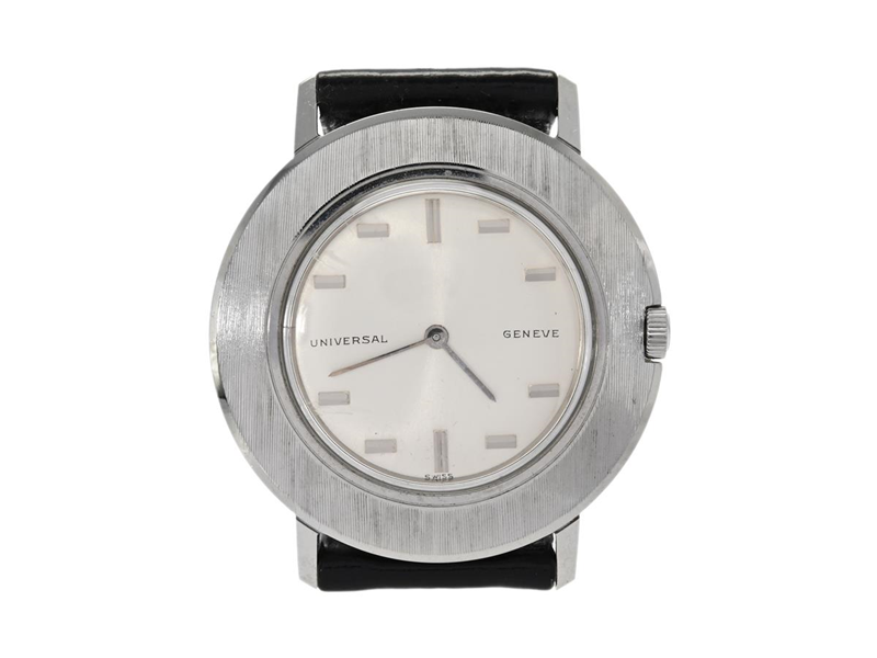 UNIVERSAL, Genéve, "Disco Volante", Cal 820, Serie nr. 2325603, Ref nr. 28235-1, herrur, 34 mm, stål, manuell, plexiglas, läderband, ca 1962.