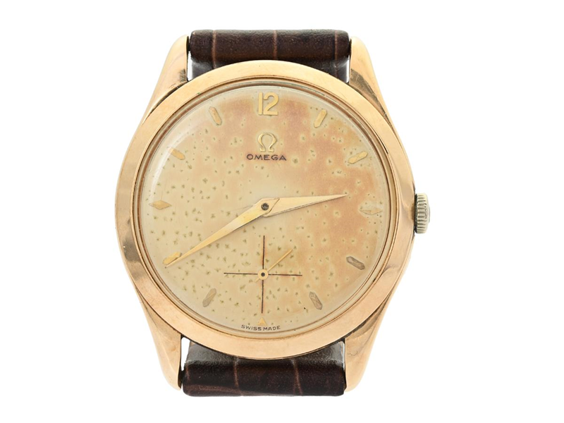 OMEGA, Trésor, Cal 265, Serie nr. 12948428, Ref nr. OJ 2619, Boett nr. 11121538 / 2619, herrur, 36 mm, 14K guld, manuell, plexiglas, liten sekundvisare, skadad urtavla, ca 1951.
