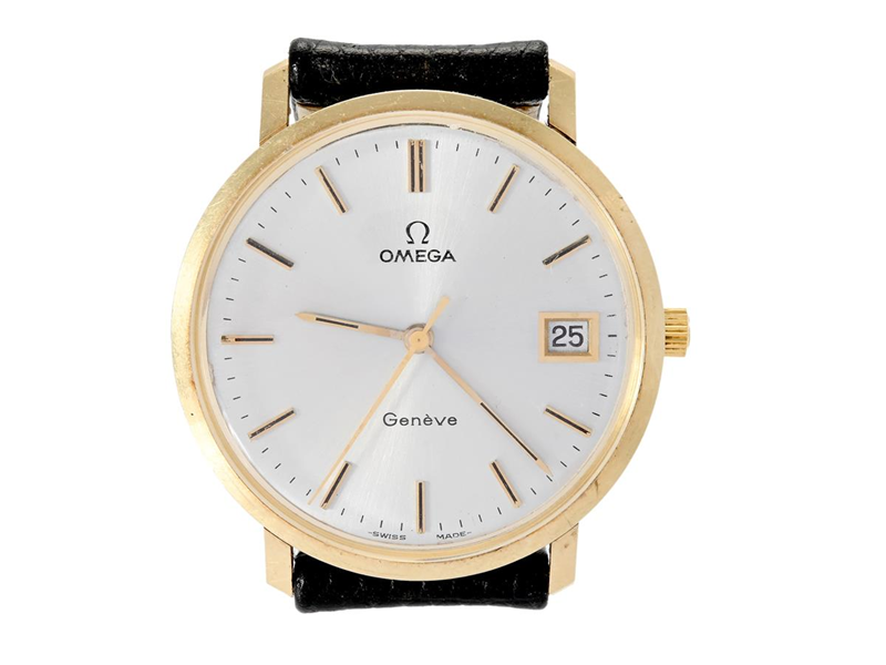 OMEGA, Genève, Cal 1030, Serie nr. 38660262, Ref nr. BA 132.9051, Boett nr. 132.9051-1 / 1181, herrur, 34 mm, 18K guld, manuell, plexiglas, datum, skadad urtavla, gravyr, ca 1974.