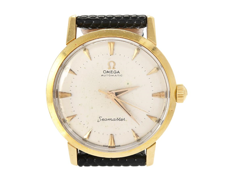 OMEGA, Seamaster, "Trésor", Cal 501, Serie nr. 16469676, Ref nr. OT 2866, Boett nr. 2866 S.C 1, herrur, 33 mm, 18K guld, automatisk, plexiglas, skadad urtavla, gravyr, läderband, ca 1958.