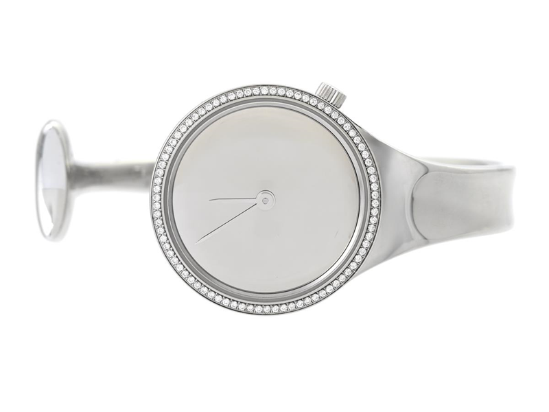 GEORG JENSEN, Vivianna, design Torun Bülow, Serie nr. 000946, Boett nr. 236, damur, 27 mm, stål, quartz, safirglas, briljantkrans (82 st. TW/VS, ca 0,172 ctv), integrerad armlänk (M), ca 2010, tygpåse, ytterkartong (skadad).