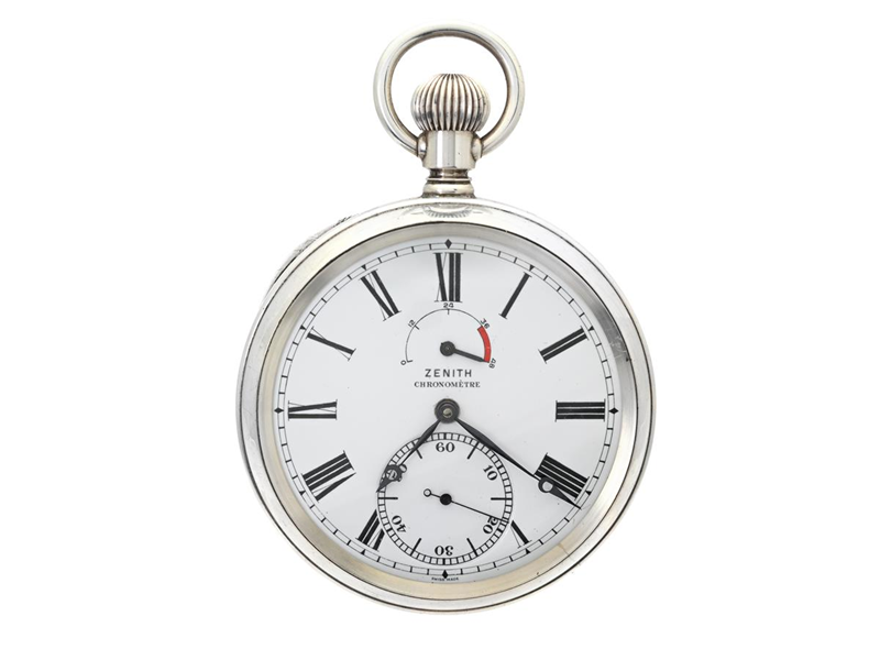 ZENITH, Chronomètre, fickur, 60 mm, Cal 5011, Serie nr. 5030573, Boett nr. 9670809, silver (0,925), ankargång, gångreservsindikator, ca 1965.
