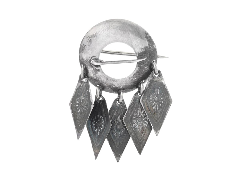 DRÄKTSMYCKE, silver, 1901, höjd 4 cm, bredd ca 3 cm, vikt 2,9 g.