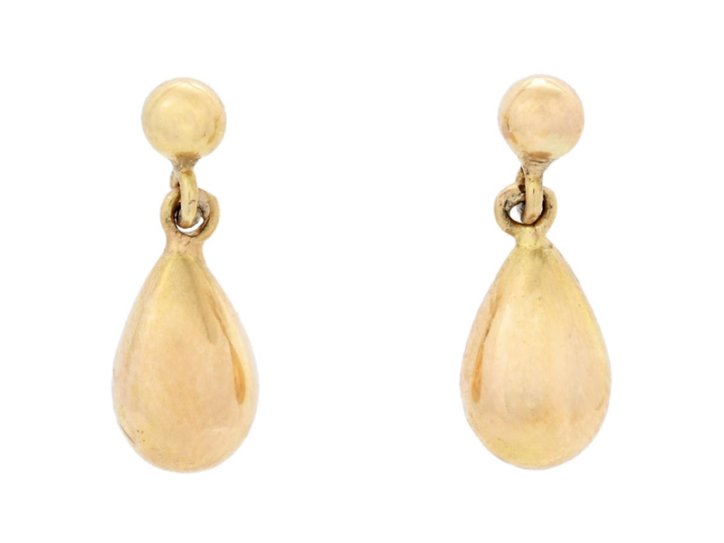 ÖRHÄNGEN, 18K guld, längd 1,5 cm, droppar något buckliga, stift, vikt 1,4 g.