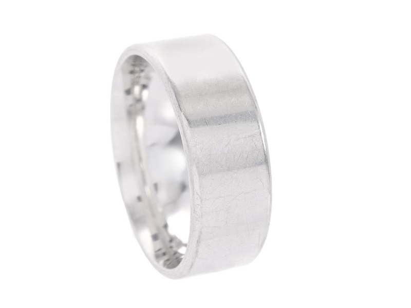SLÄT RING, 18K vitguld, bredd 8 mm, flack utsida, svagt välvd insida, stl 19,5 mm, vikt 13,1 g.