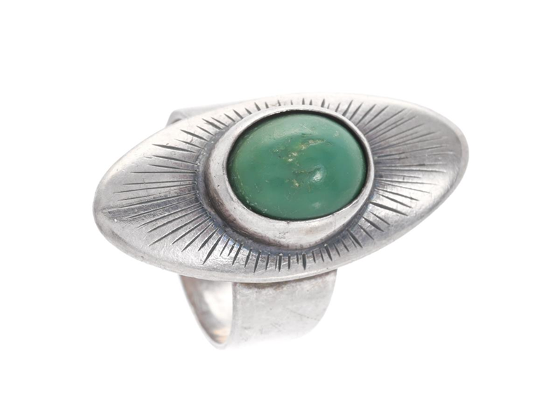 RING, silver, turkos, Ackert Tötterman, Gävle 1955, storlek 17,5 mm, vikt 8,6 g, turkosen är lös i sin fattning.