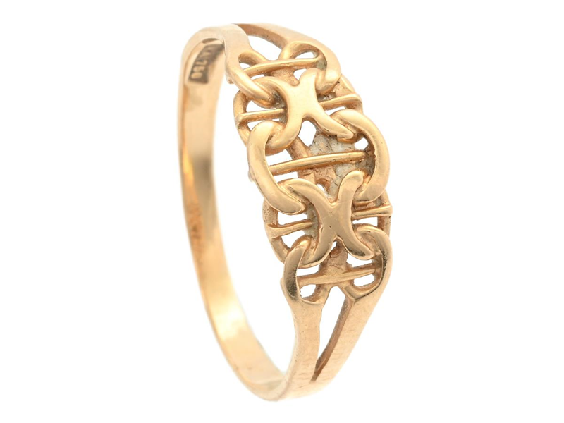 RING, 18K guld, x-länk med stav, stl 17,5 mm, vikt 1,8 g.