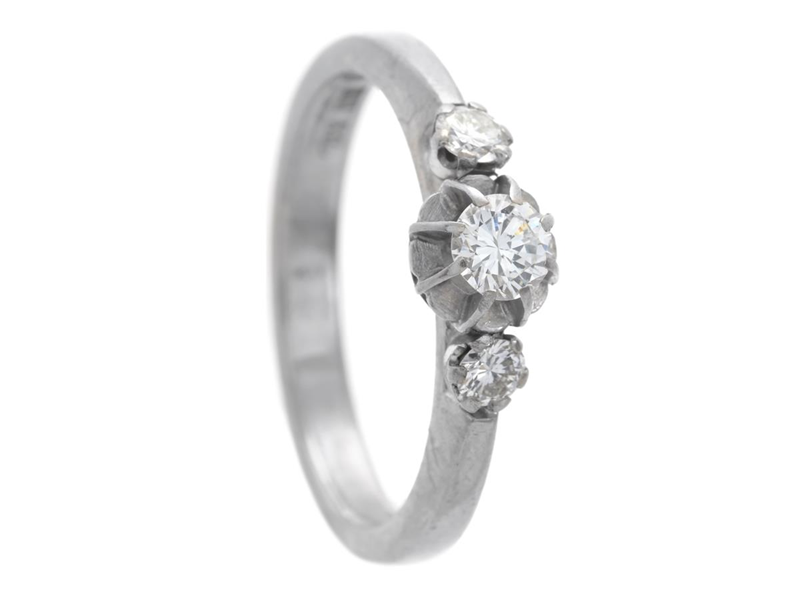 RING, 18K vitguld, briljantslipade diamanter ca 0,35 ctv, ca TW/VS, stl 17,25 mm, vikt 4,4 g, slitna klor.