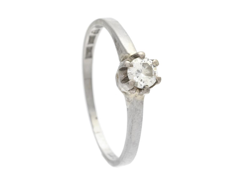 ENSTENSRING, 18K vitguld, briljantslipad diamant ca 0,18 ct, ca TW/VS, stl 16,75 mm, 2,0 g, gravyr.